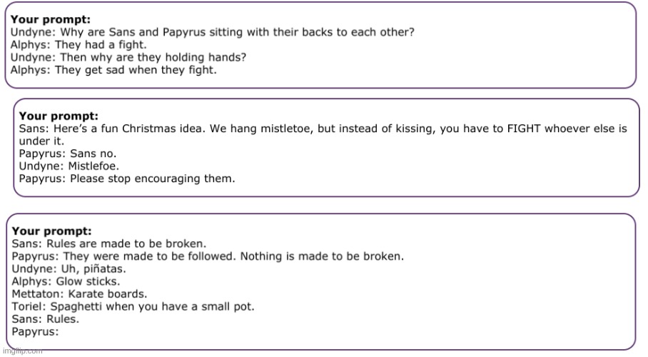 Some prompts may imply shipping between 2 or more characters. 75.3k members in the princessesofpower community. In the future i plan to implement a feature to filter out prompts that involve shipping . Scatterpatter's incorrect quotes generator · otp prompt generator by eliasz · prompt . There may be swearing in some of the quotes and the hermits will probably be ooc.